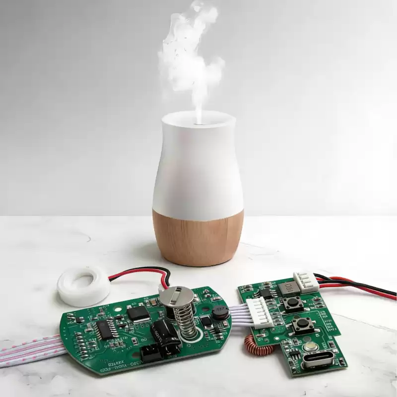 This USB aromatherapy humidifier control board is a highly integrated intelligent drive system designed specifically for modern desktop, in-vehicle, and personal health scenarios. As the core controller of the device, it integrates ultrasonic atomization, intelligent aromatherapy, multi-mode control, and energy-saving management into a single miniature PCB board. Through advanced MCU main control and precision analog circuitry, it achieves efficient and stable operation under 5V USB power supply.