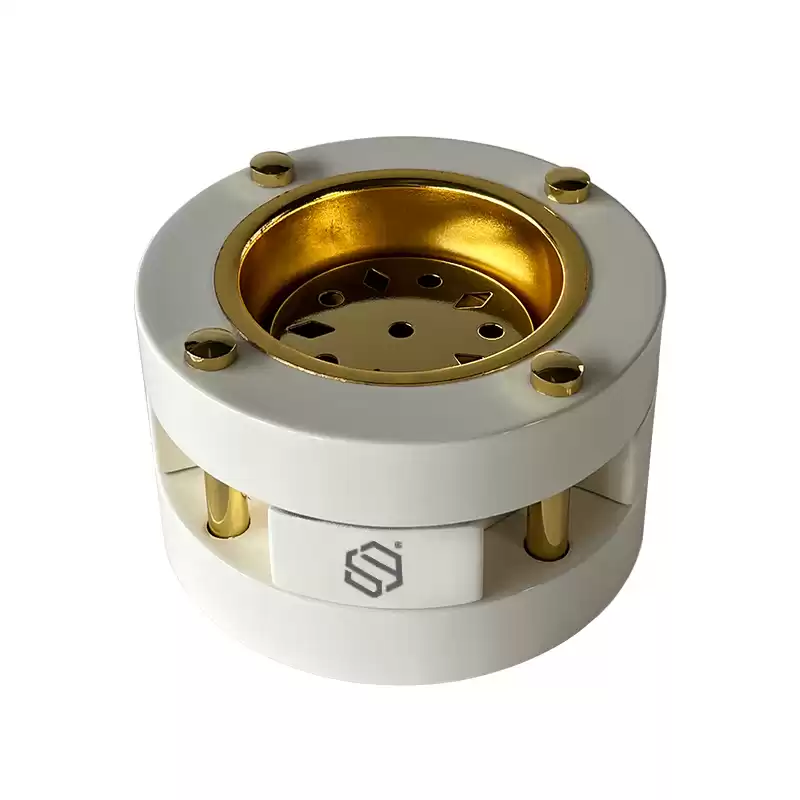 White high glossy lacquered round wooden incense holder. It can be a great decorative art piece, an incense burner for religion or meditation purpose, or be used as a bowl to burn rosin and incense powder.